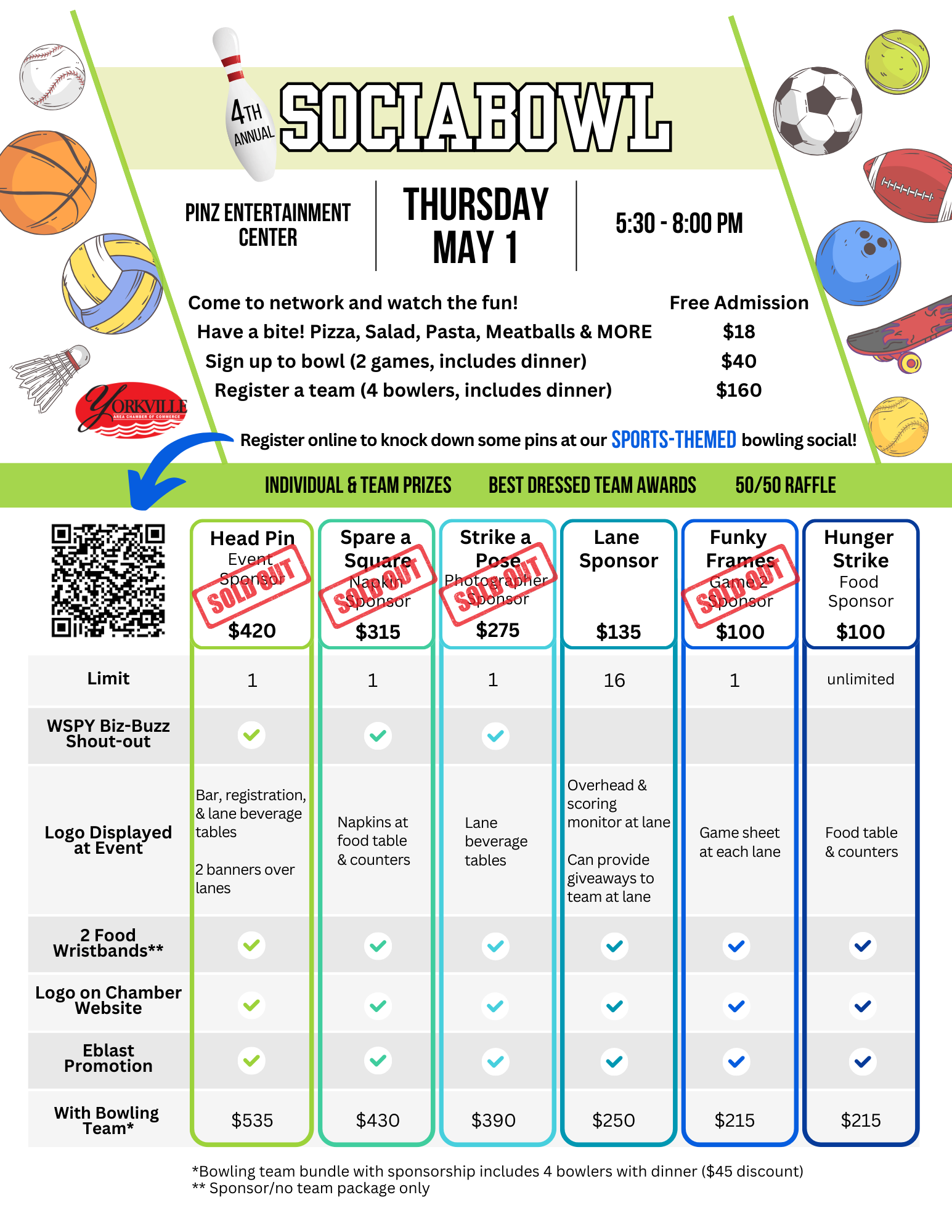 Non-bowlers can still register for several sponsor levels that include 2 wristbands for the dinner buffet. Showcase your business and come out to cheer on the competition!