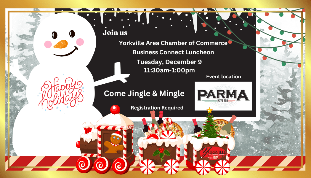 Contact the Yorkville Chamber office 630-553-6853 or support@yorkvillechamber.org