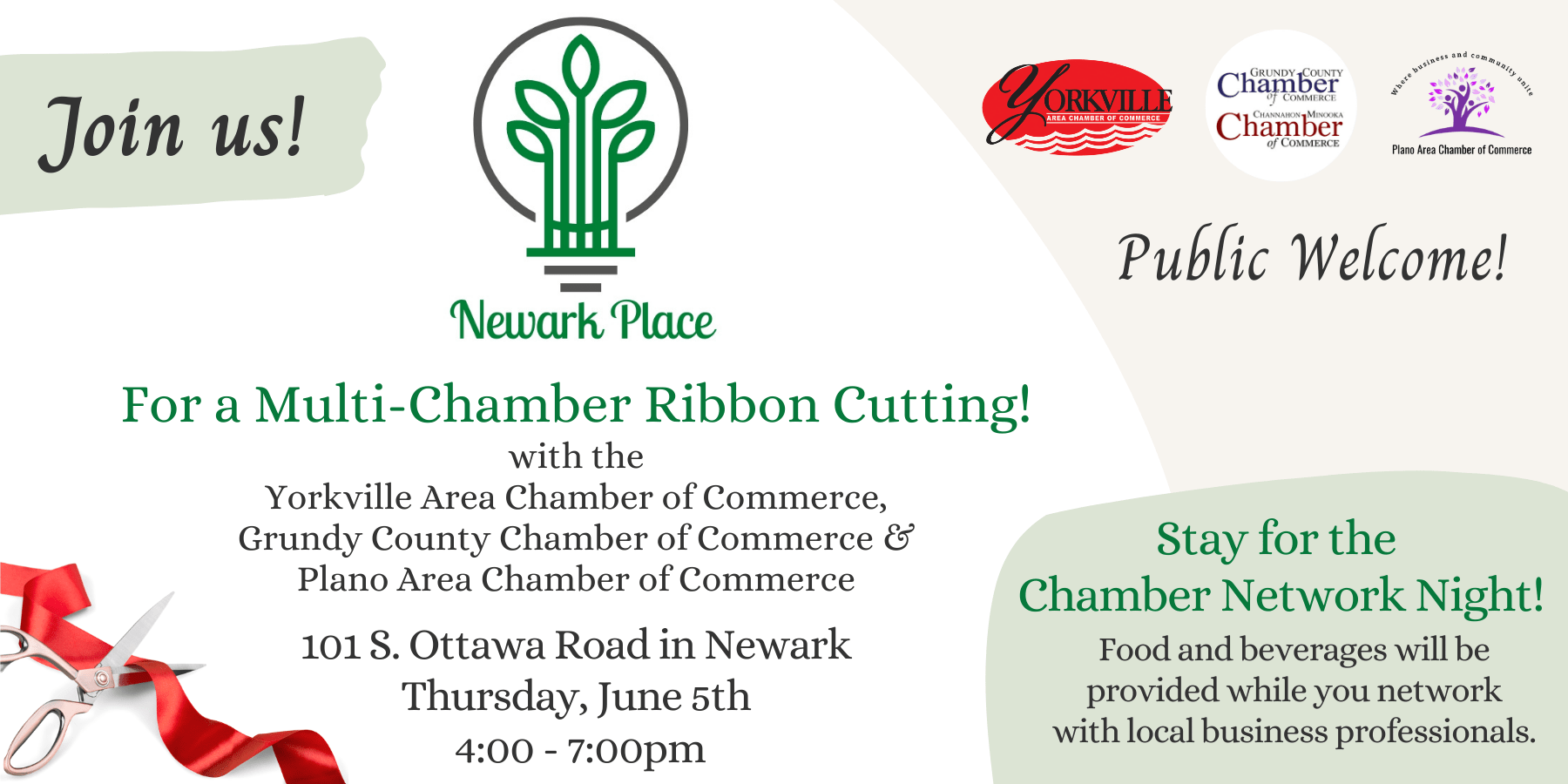 Join us, along with the Grundy County Chamber of Commerce & Industry and Plano Area Chamber of Commerce, for a Multi-Chamber Ribbon Cutting to welcome Newark Place!