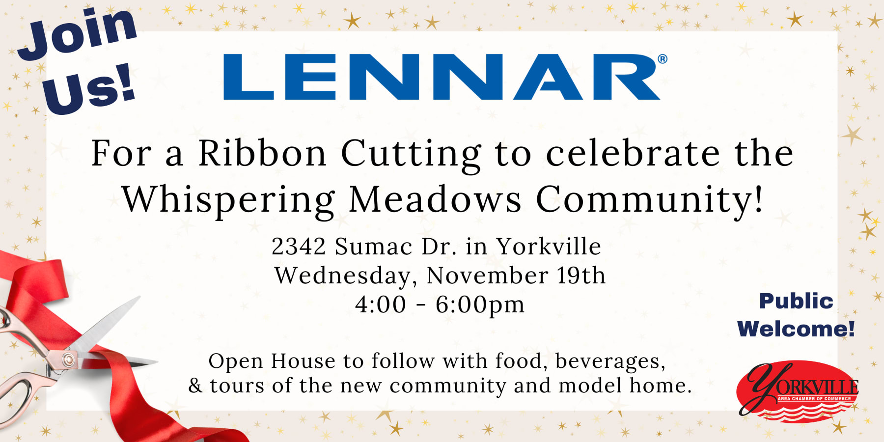 Join us for a Ribbon Cutting to celebrate Whispering Meadows, Lennar's newly developed community in Yorkville!